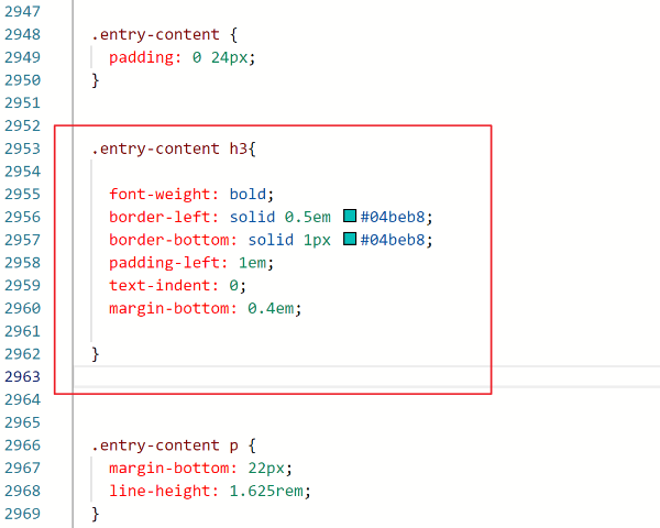 저는 다음과 같은 위치에 추가로 .entry-content h3를 추가했습니다.